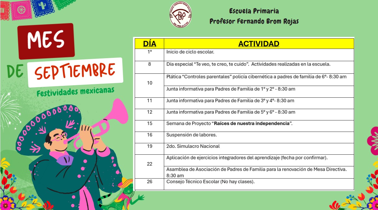Se les da a conocer las actividades que se llevarán a cabo en el mes de Septiembre.