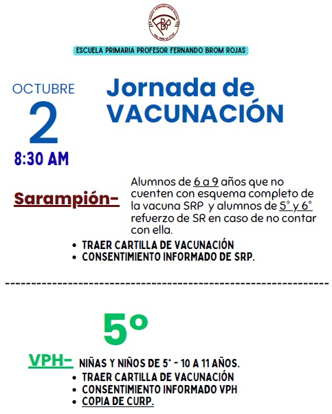 NOTA: Para la aplicación de las vacunas se les inviará acuses de autorización y la logística de ese día.