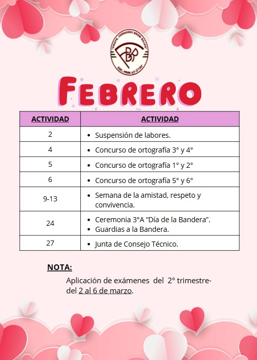 Se les da a conocer las actividades que se llevarán a cabo en el mes de Febrero.